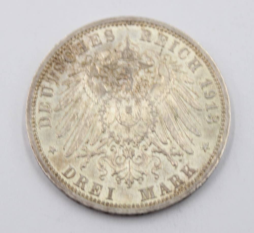 preußische 3-Mark-Silbermünze, 1913, anlässlich des 25-jährigen Regierungsjubiläums von Kaiser Wilhelm II., 16,69gr., D-3,3cm [1]