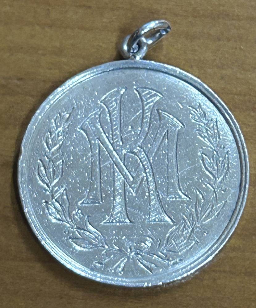 Silber-Anhänger mit Kaiser-Worten "Ich kenne keine Parteien mehr..! Wilhelm II, 1914, verso Ziermonogramm, 11,28
