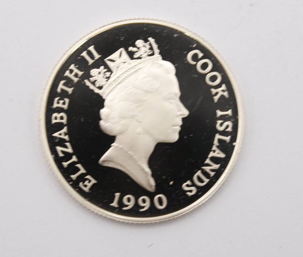 Silbermünze der Cookinseln, 10 Dollar XXV. Olympische Spiele 1992 in Barcelona, 925er Silber, 10 gr., ca. D-3cm [1]