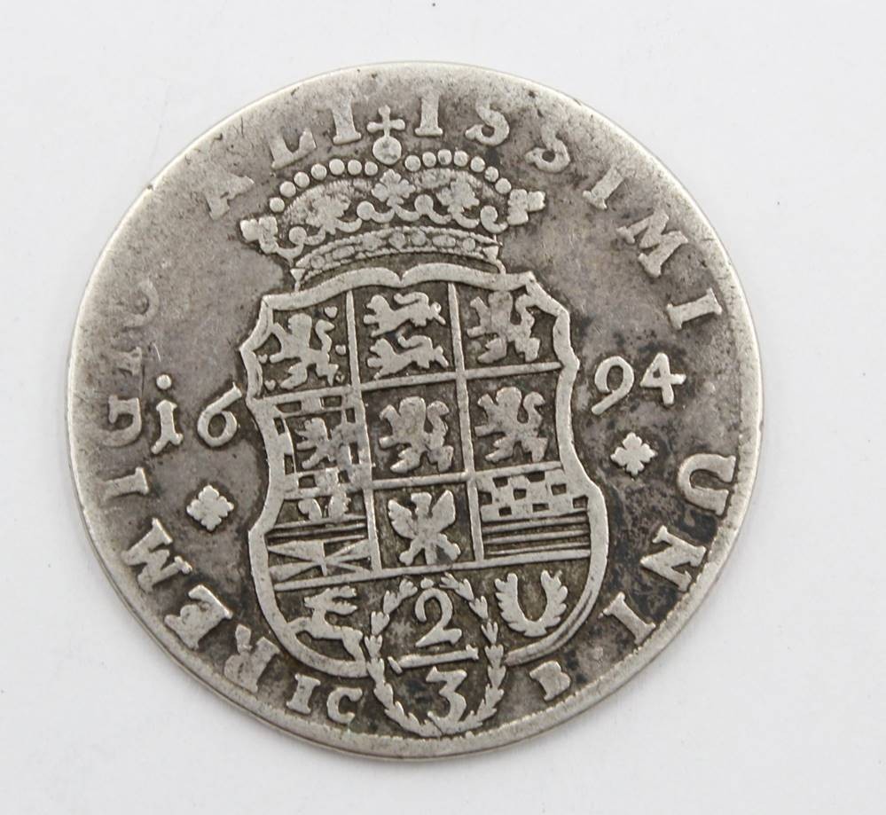 ⅔ Taler (24 Mariengroschen) aus dem Herzogtum Braunschweig-Wolfenbüttel, 1694, Silber, 26,2 gr., D-3,7 cm [1]