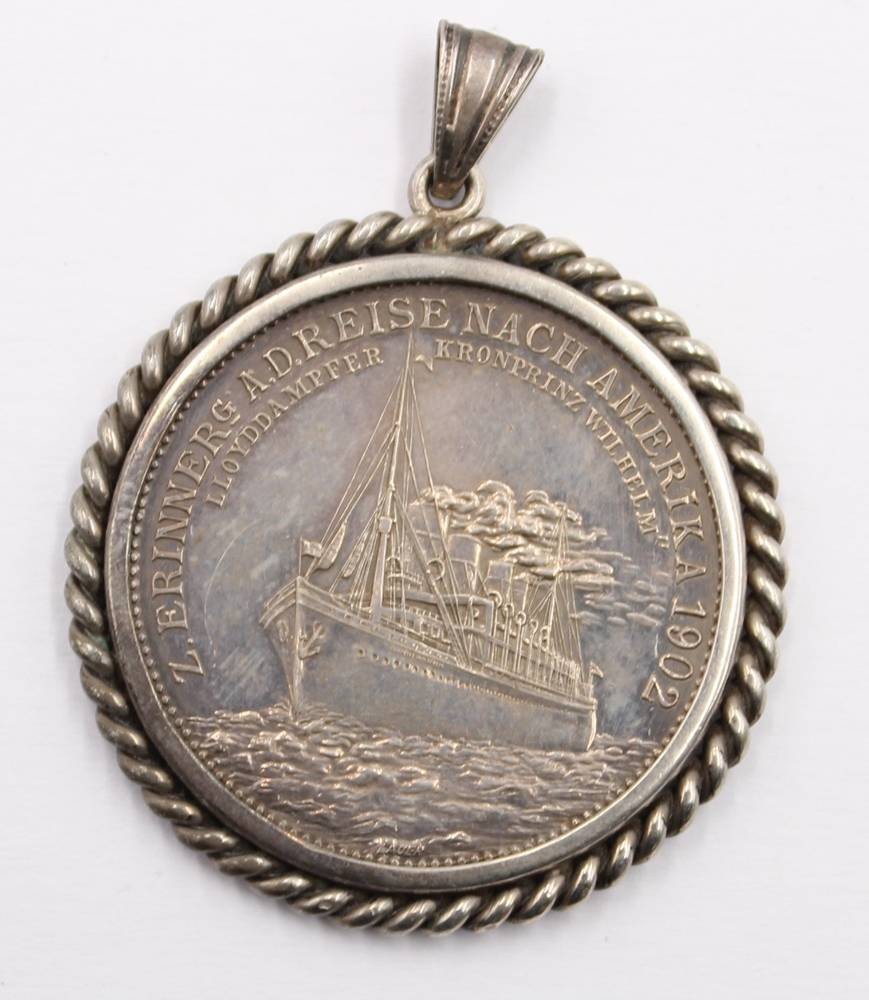 Wilhelm II., 1888 - 1918. Medaille auf die Amerikareise des Prinzen Heinrich mit der "Kronprinz Wilhelm". Gestaffelte Büsten des Präsidenten Roosevelt und des Prinzen Heinrich nach links. [1]
