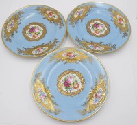 3 Prunkteller, 19.Jhd., Handbemalt,"Albin Denk's Witwe" Wien, Eisgrübel, blauer Fond leicht berieben, ansonsten sehr gut, 19.JhdDas Haus Stadt 605 führte das Schild "Zum Eisgrübel(1470 erstmals erwähnt . 1895