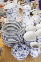 Kaffeeservice "Royal Copenhagen" Halbspitze, 33 Teile, 10 kompl. Gedecke und Kaffeekerm, Kannen H-24 cm, Tassen H-6 cm
