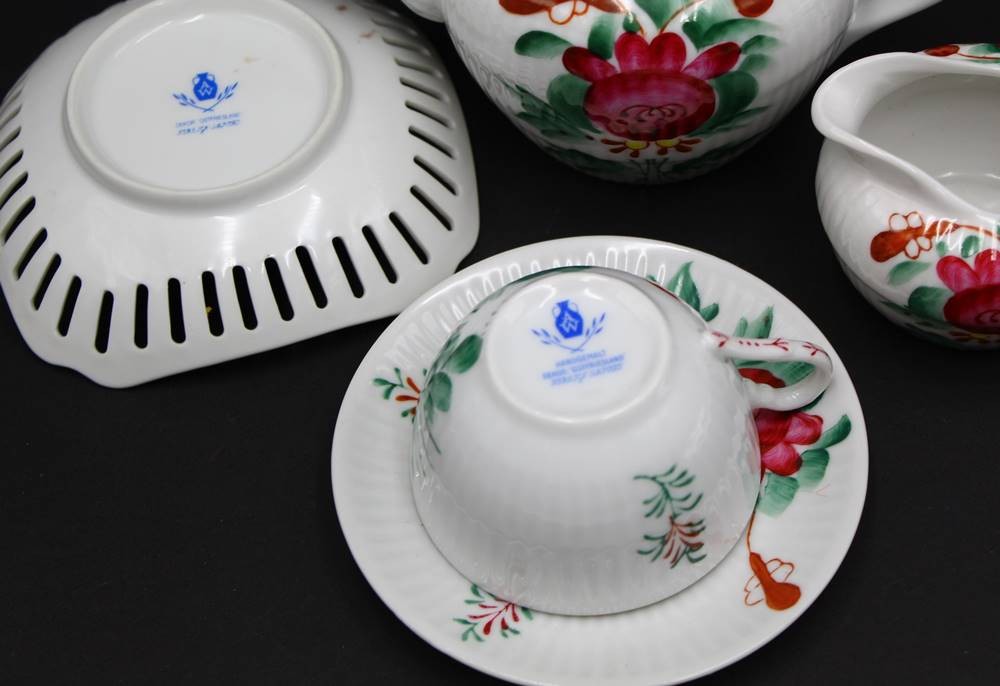 10 Teile handdekoriertes Teegeschirr, Friesenrose, Teekanne H-10 cm [1]