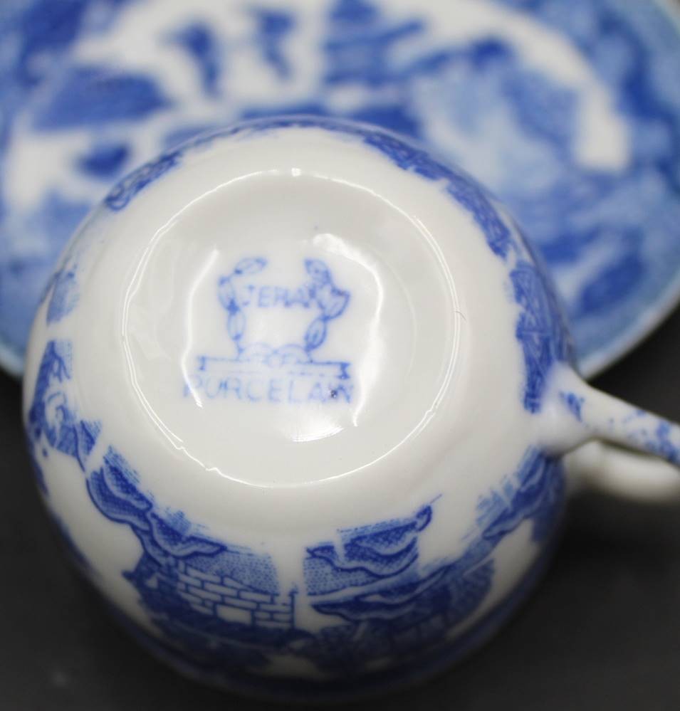 13x kl. Teetassen mit 14 U.T., Blue Willow Dekor "Jehan porcellaine"? [1]