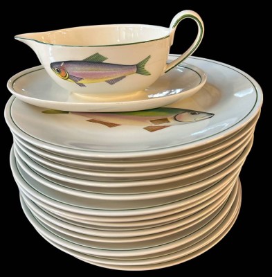 14x Fischteller und eine Sauciere "Villeroy&Boch" Decor Atlantic, D-26 cm [1]