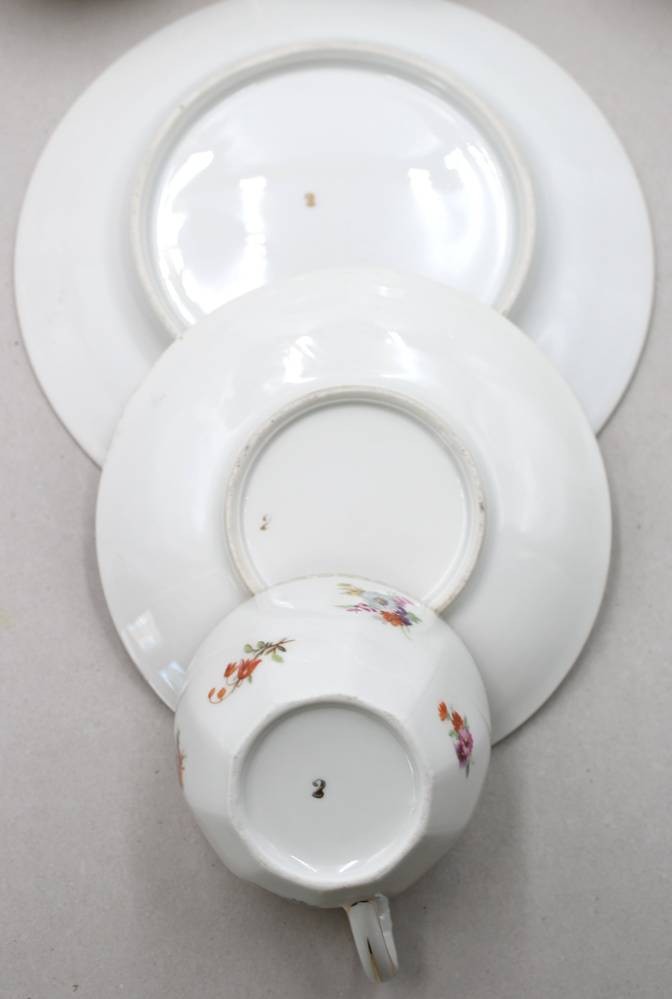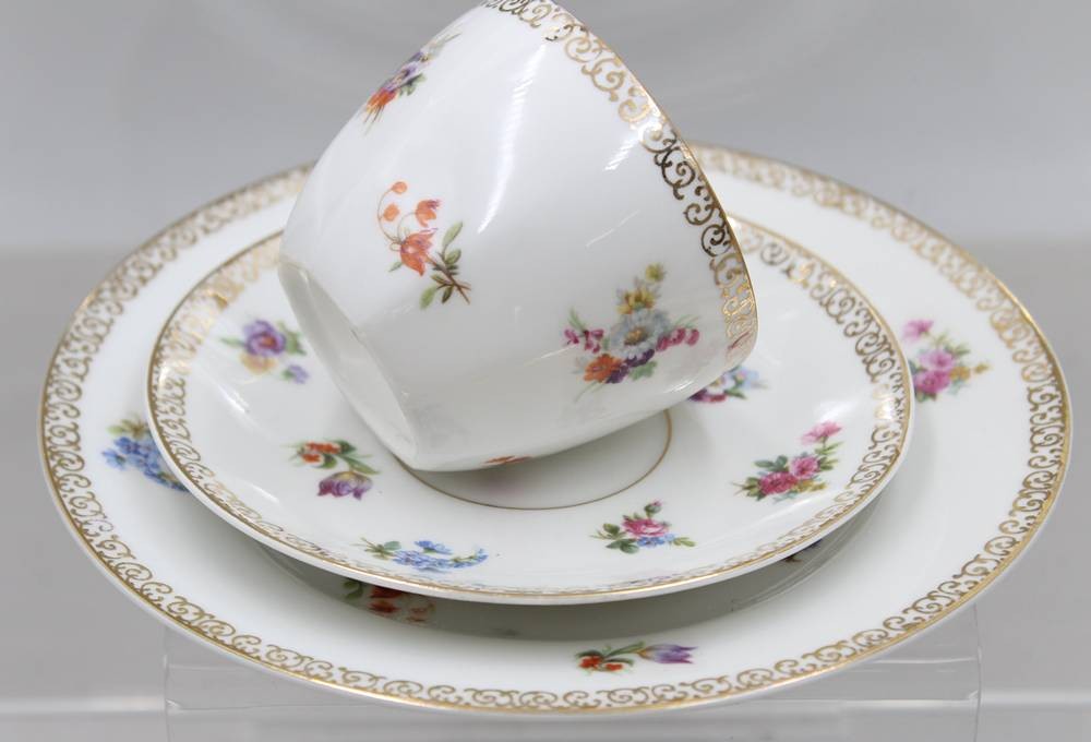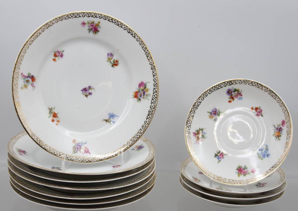 19 Serviceteile, älter, Blumen und Golddekor, 6x Tassen, 5x U.T., 8x Kuchenteller, Tassen H-6,3cm [1]