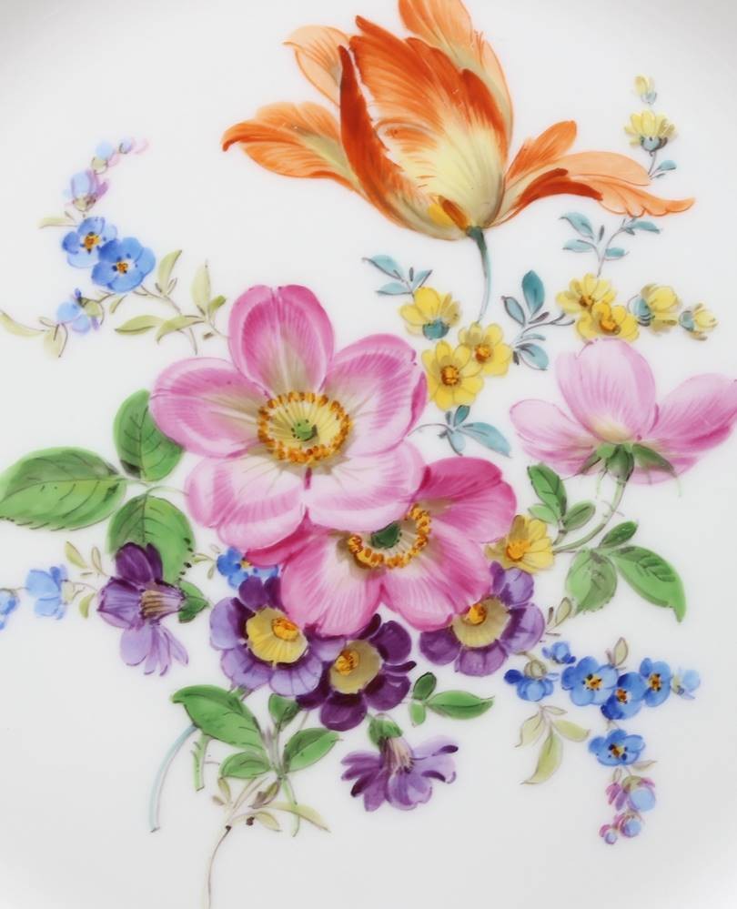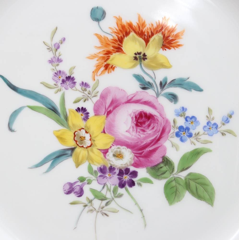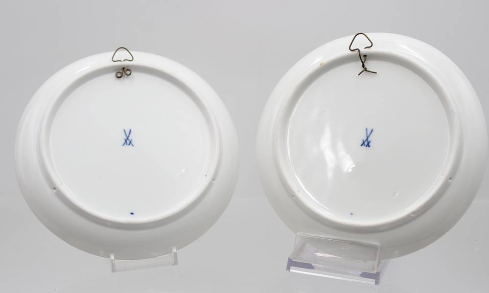 2 kl. Wandteller, Meissen Schwertermarke, Blumenbemalung, 4 Schleifstriche, je D-17,5cm [1]