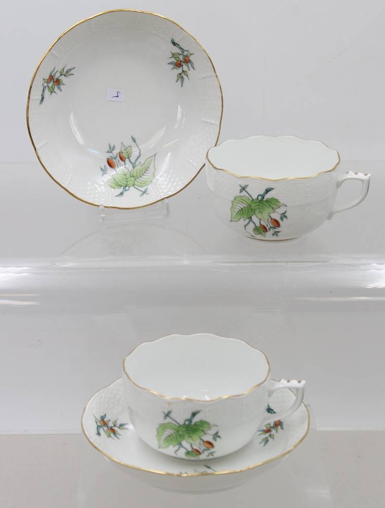 2 komplette Gedecke, Herend, florales Dekor, Tassen H-5,4cm