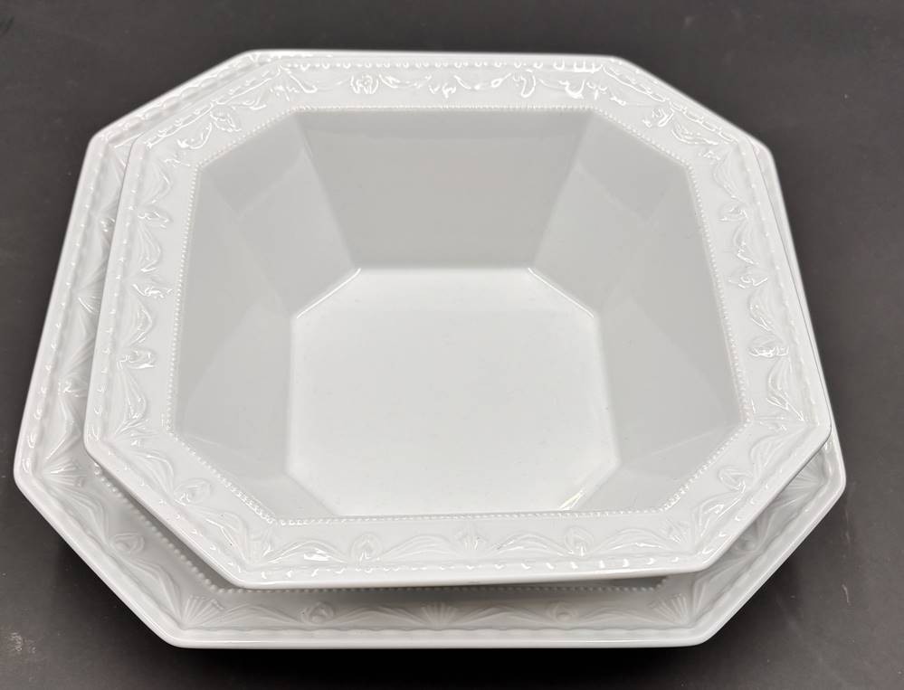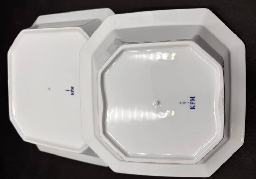 2 Schalen "KPM" Berlin, Dekor Rocaille, H-5,5 und 8 cm, 24x24 und 28x28 cm [1]