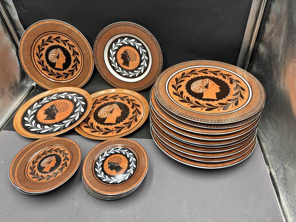 22 verschieden grosse Teller mit etruskischen Köpfen, Design Konrad Ellerhorst, aus W.Hamilton Sammlung, 17-25-32 cm [1]