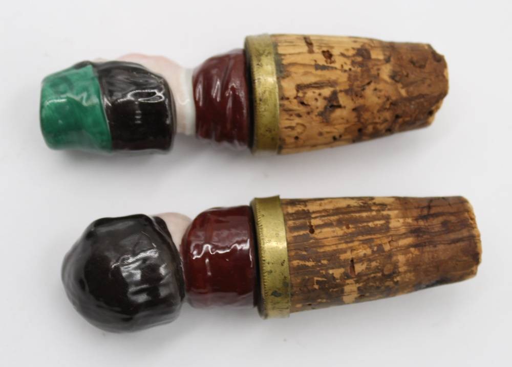 2x antike Scherzkorkenhalter, Porzellan bemalt, ca. H-8cm [1]