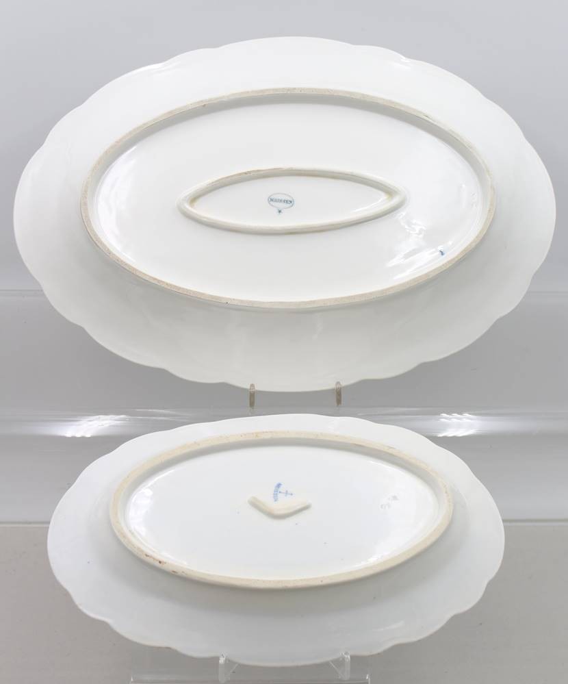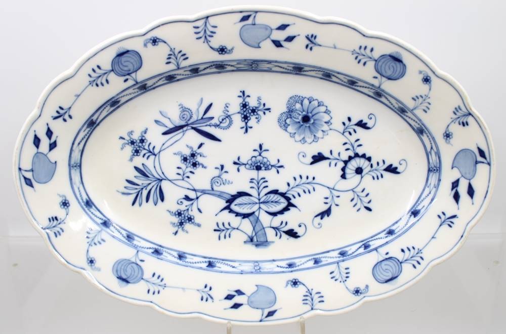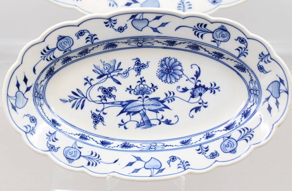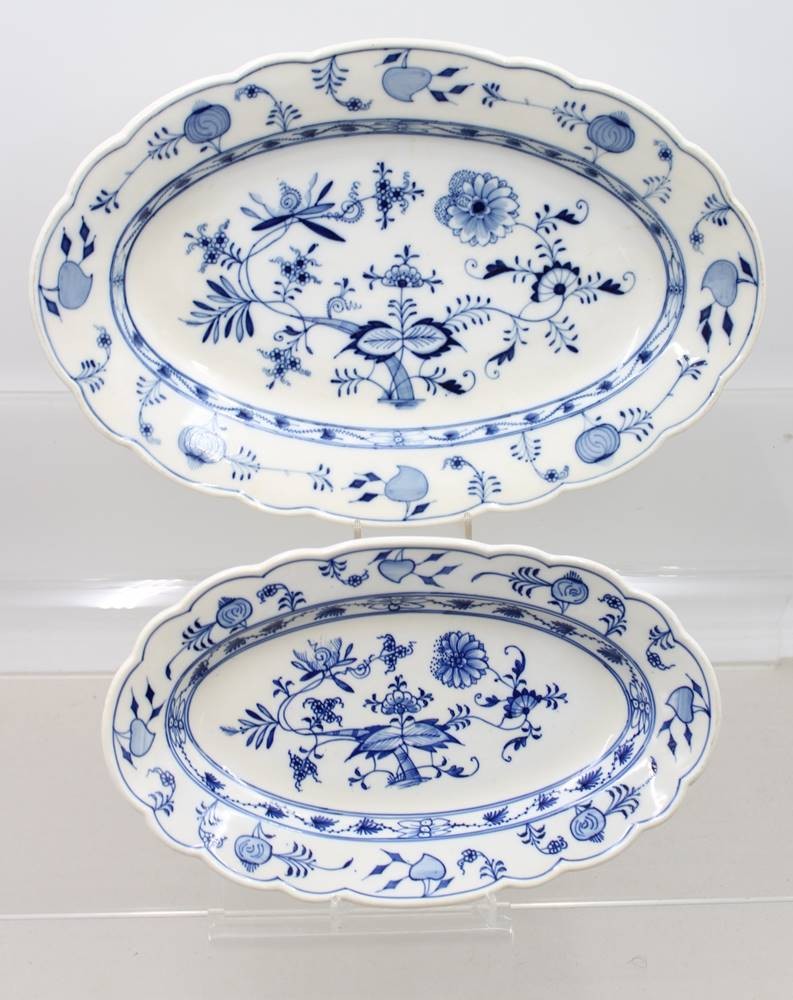 2x div. ovale Platten, Stadt Meissen, Zwiebelmuster, ca. 39,5cm und 30cm [1]