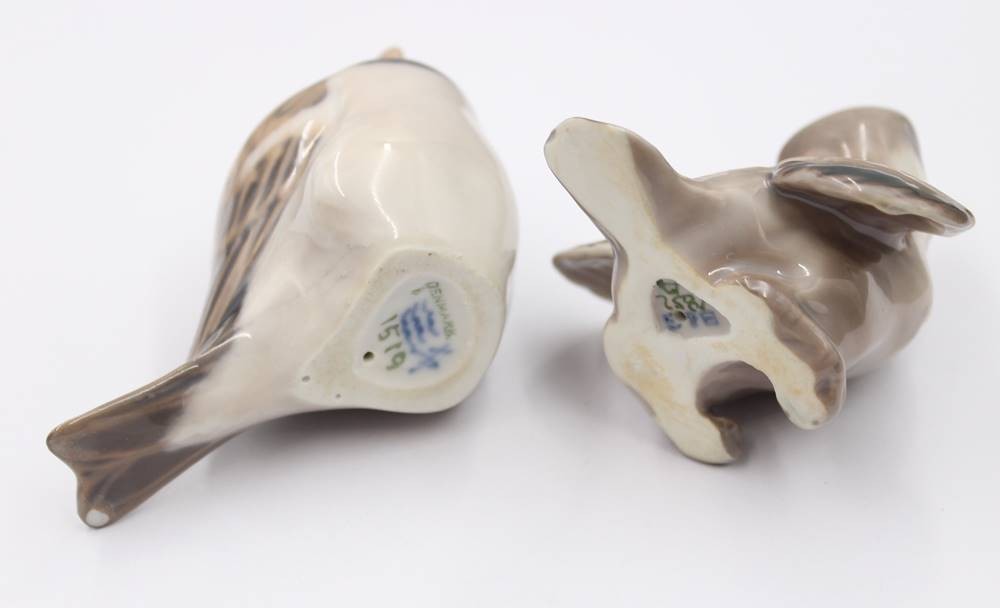 2x div. Vogelfiguren, Royal Copenhagen und Bing & Gröndahl, je Unterglasurfarben, ca. H-6,8cm [1]