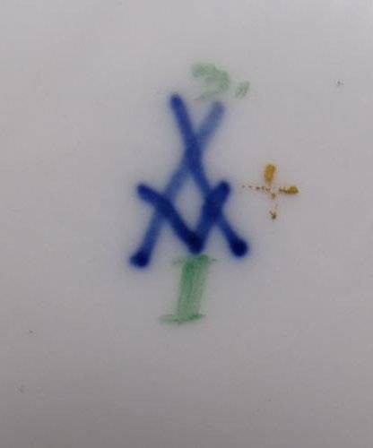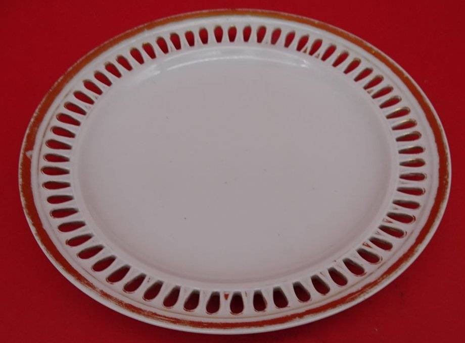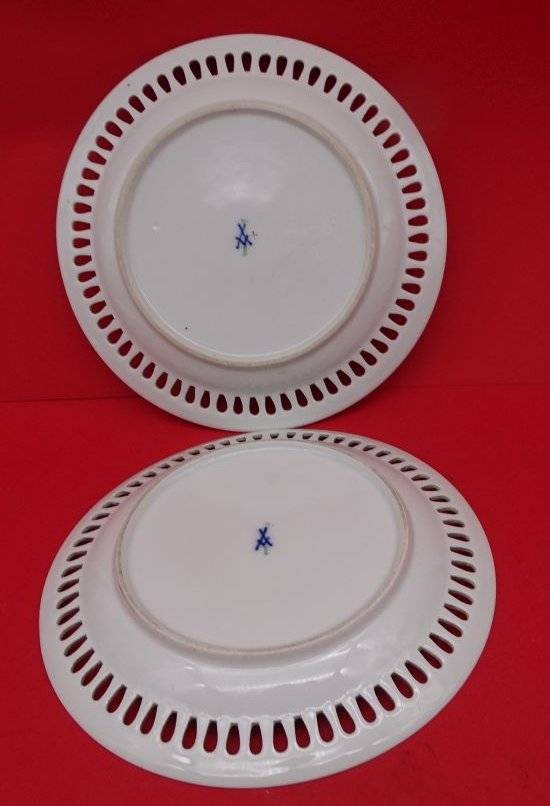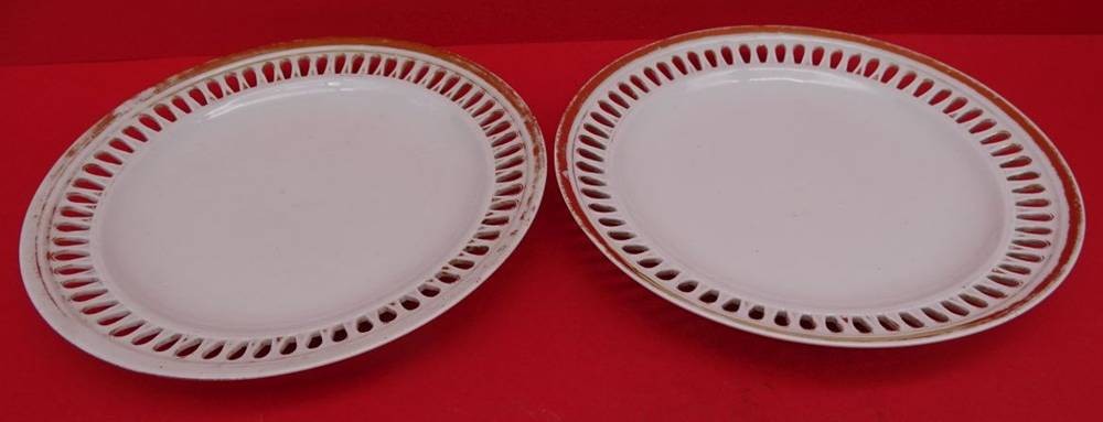 2x Durchbruchteller "Meissen" Schwertermarke, 1.Wahl um 1860, Goldrand stark berieben, D-21 cm [1]