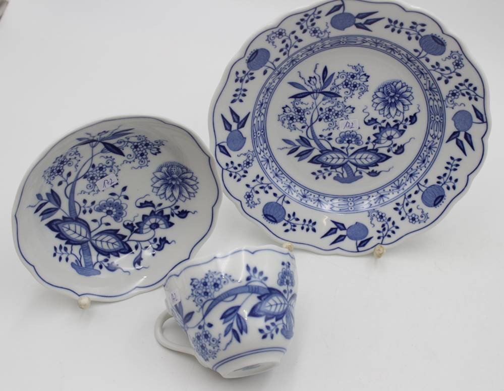 2x Kaffee-Gedecke, Hutschenreuther, Zwiebelmuster, 1 Gedeck mit Schleifstrich, ca. H-6,5cm. [1]
