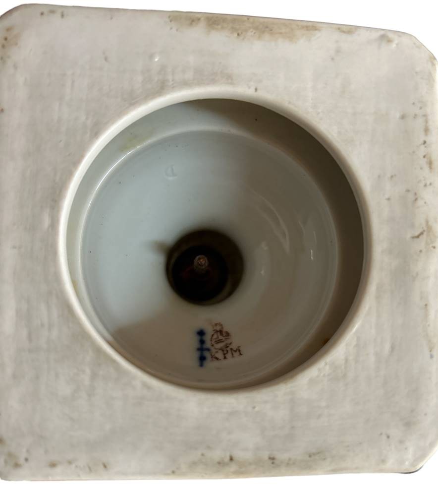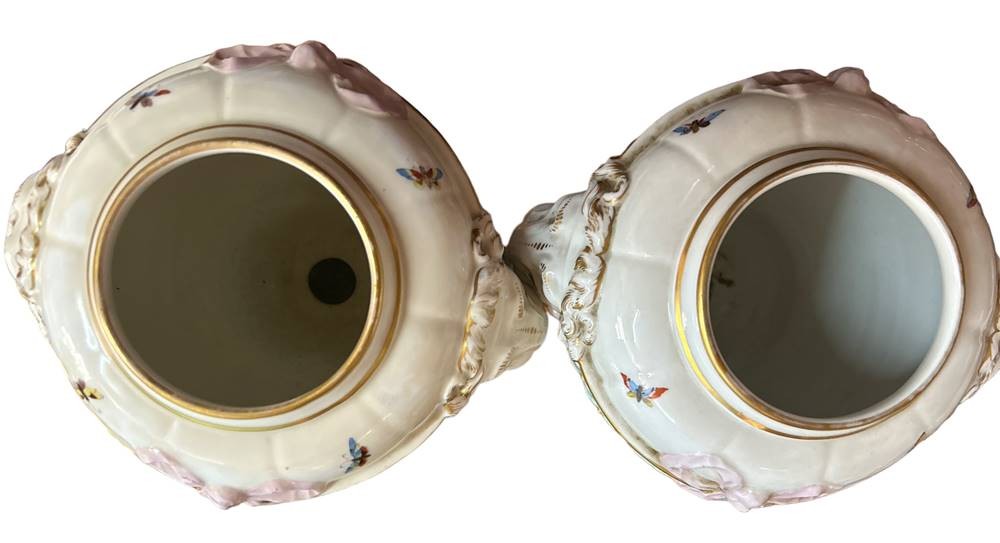 2x KPM Urnenvasen um 1880, bei beiden ein Medaillon beschädigt, H-27 cm, Zeptermarke und Reichsapfel, beidseitig Löwenköpfe mit Girlanden, 3x fehlen die Ringe, aber einmal Bruchstück anbei