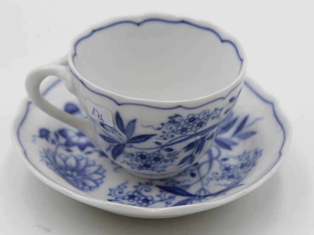 2x Mokkatassen mit U.T., Hutschenreuther, Zwiebelmuster, ca. H-5cm [1]