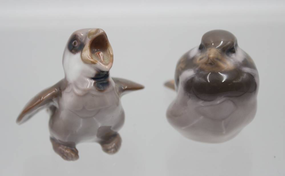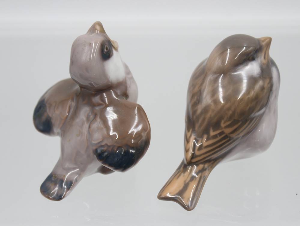 2x Vogelfiguren, Royal Copenhagen und Bing 6 Gröndahl, je Unterglasurfarben, ca. H-6,8cm [1]