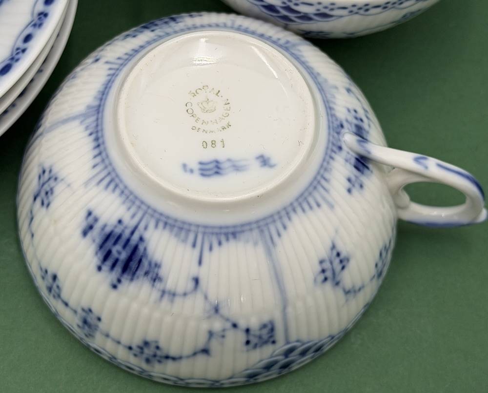 3 Teetassen mit U.T. "Royal Copenhagen" Halbspitze