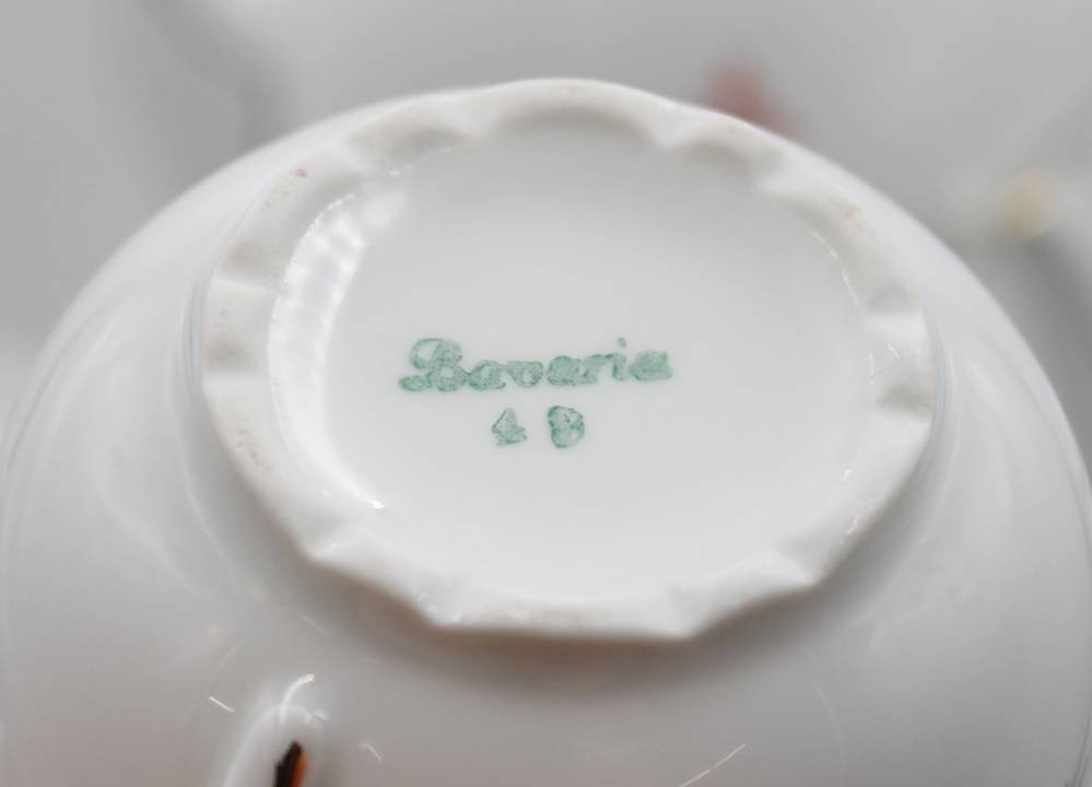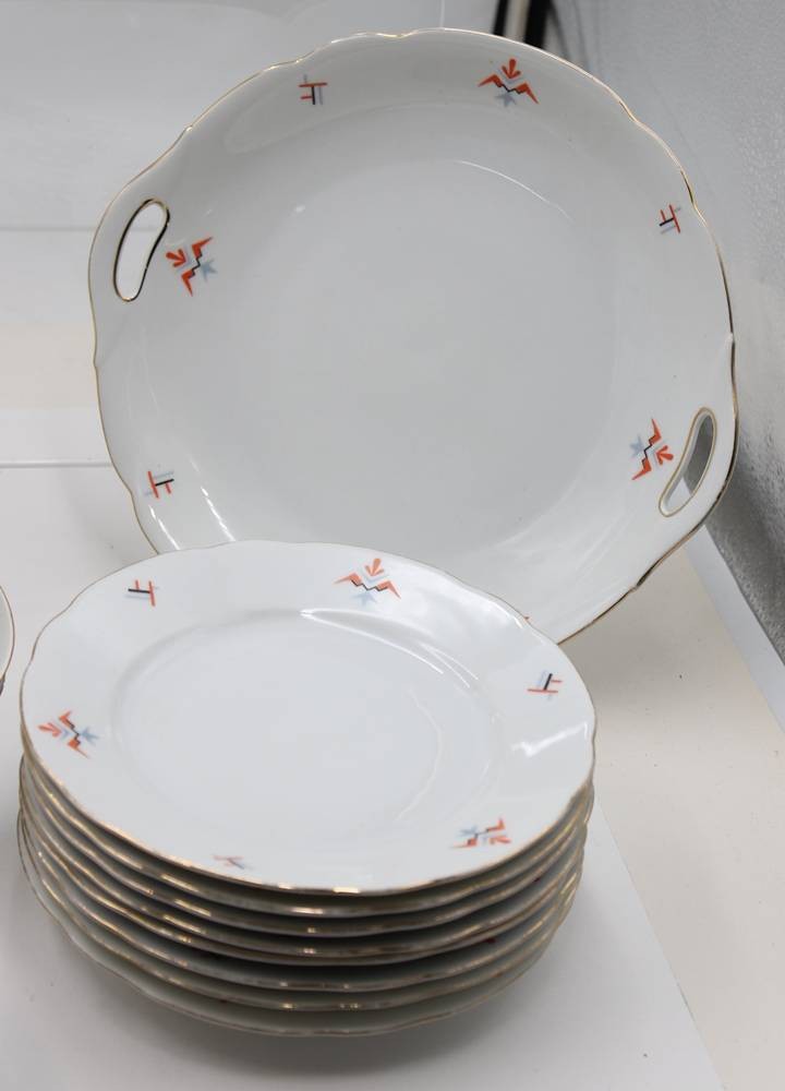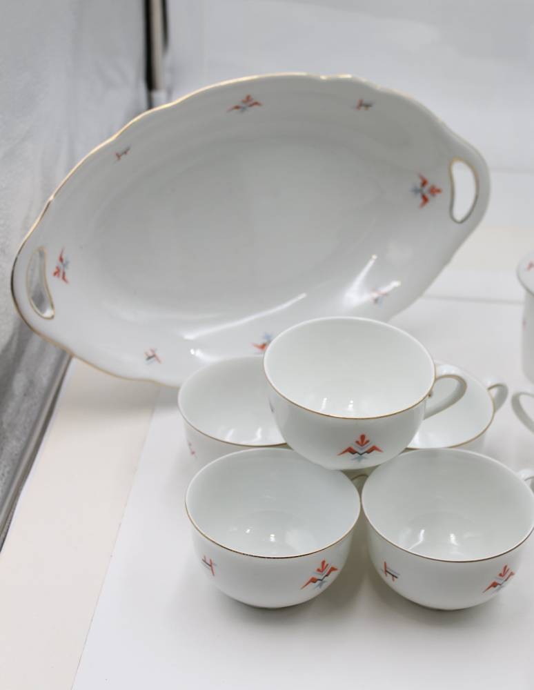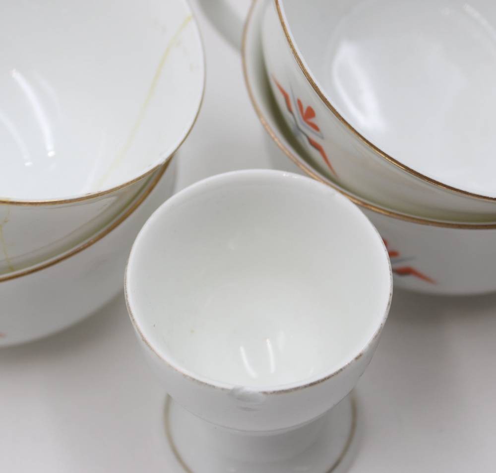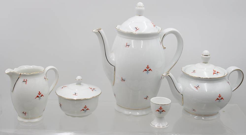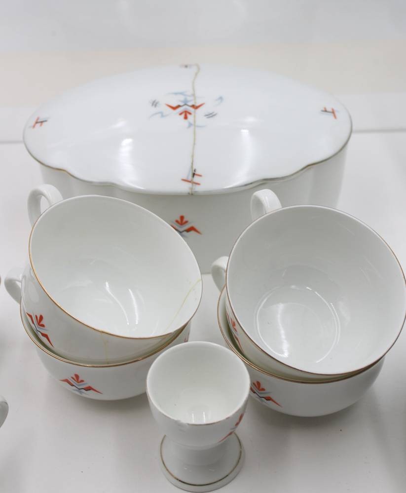 38 Art-Déco Serviceteile, BAVARIA, Deckeldose, 4 Tassen und ein Eierbecher beschädigt, Kanne H-27cm Tassen H-5,4cm [1]