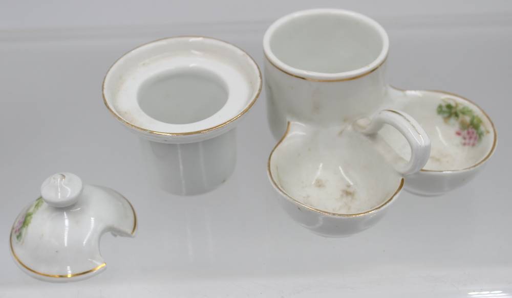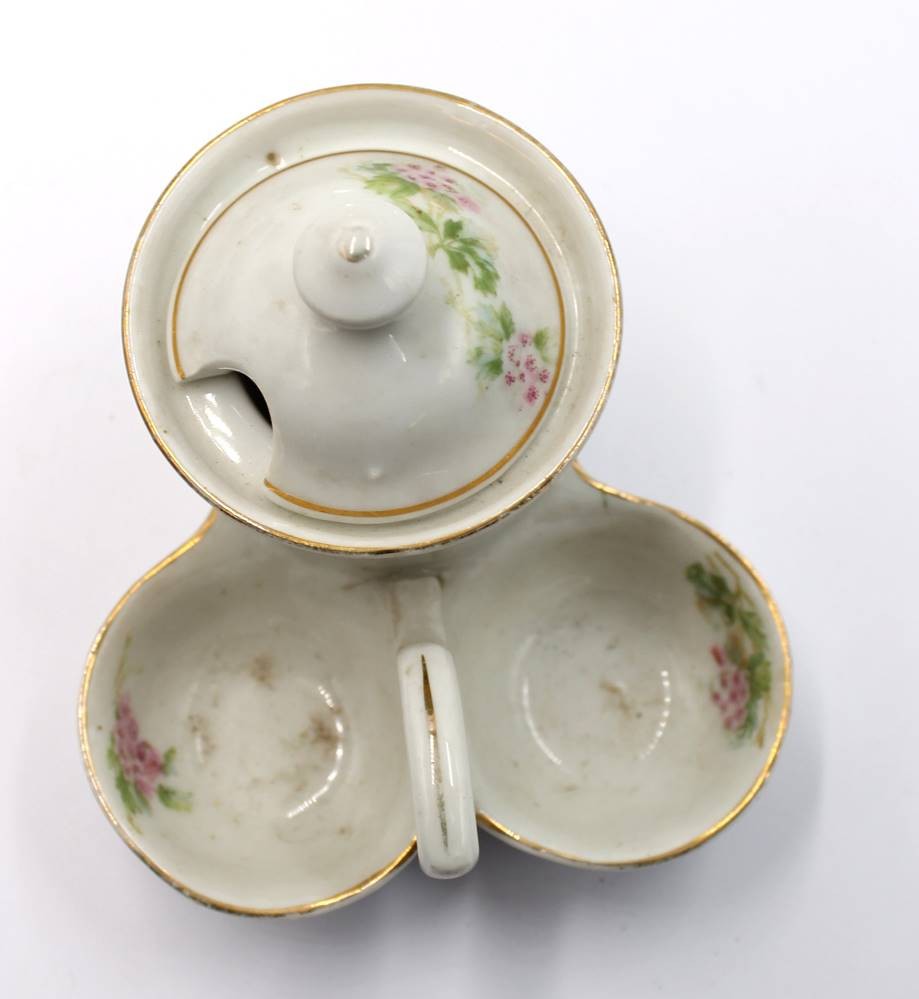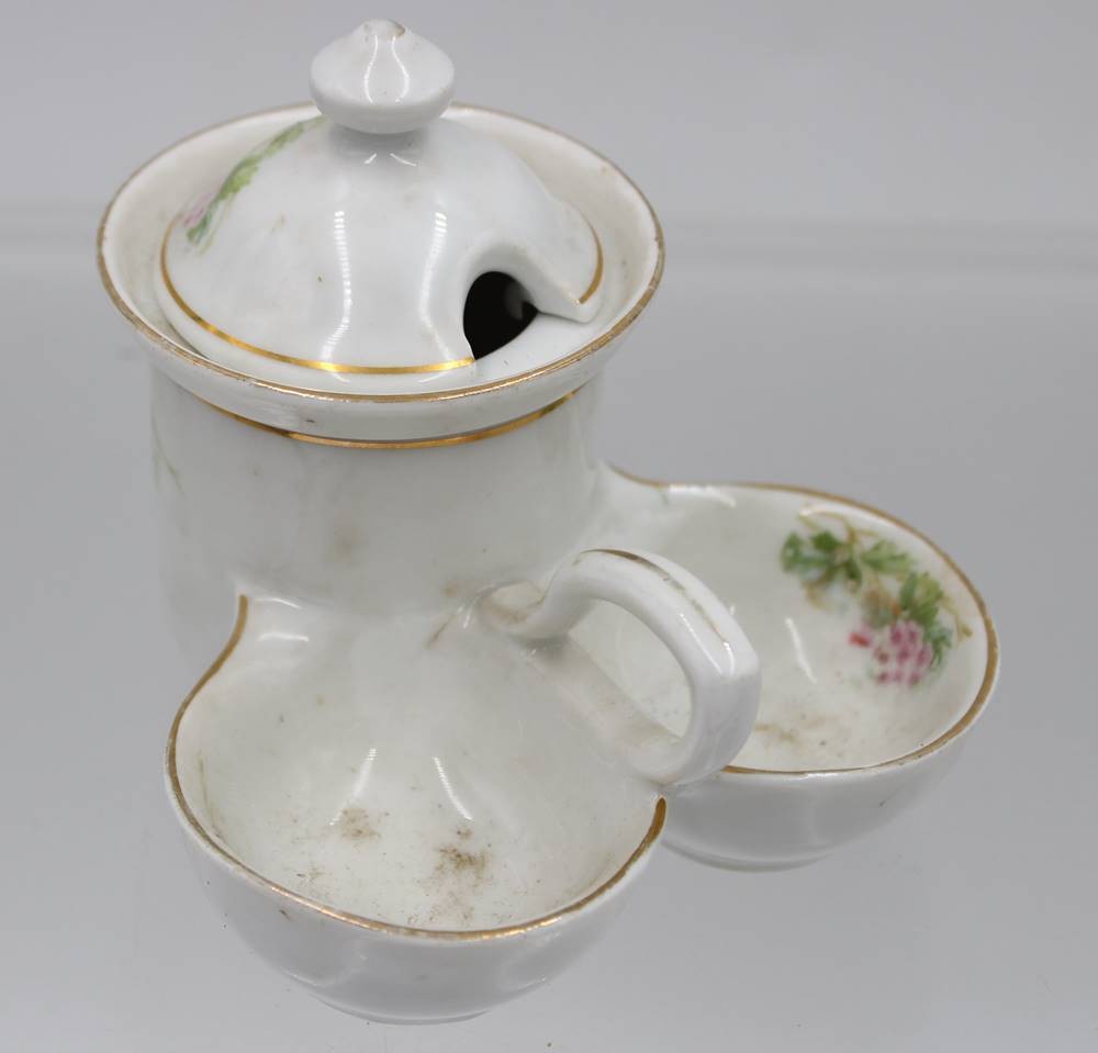 3passige Menage, älter, ungemarkt, florales Dekor, ca. H-8,8cm B-10,5cm [1]