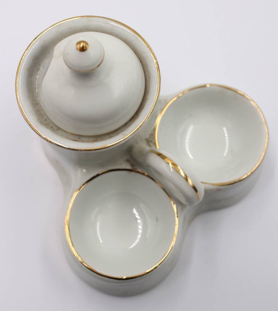 3passige Menage, ungemarkt, älter, Ansicht Rathaus Hamburg, ca. H-9,5cm B-12,5cm [1]