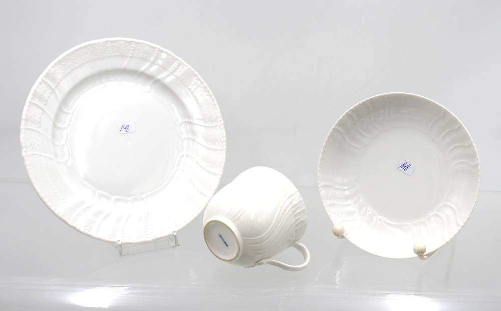 3tlg. Gedeck, KPM Berlin, Neuosier, Weißporzellan, Tasse H-6,5cm [1]