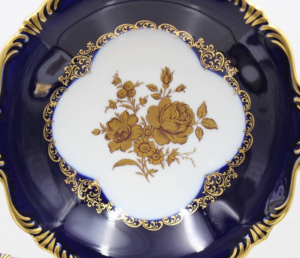 3tlg. Schalenset, Lindner, Kobalt m. Gold, Goldblumen, D-19,5cm u. 2x D-10cm [1]