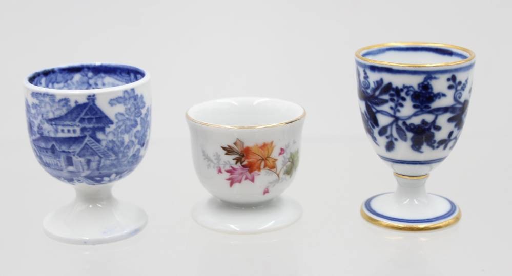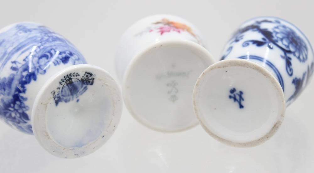 3x div. Eierbecher, 1x Meissen Zwiebelmuster 1. Wahl, ca. H-6,5cm [1]