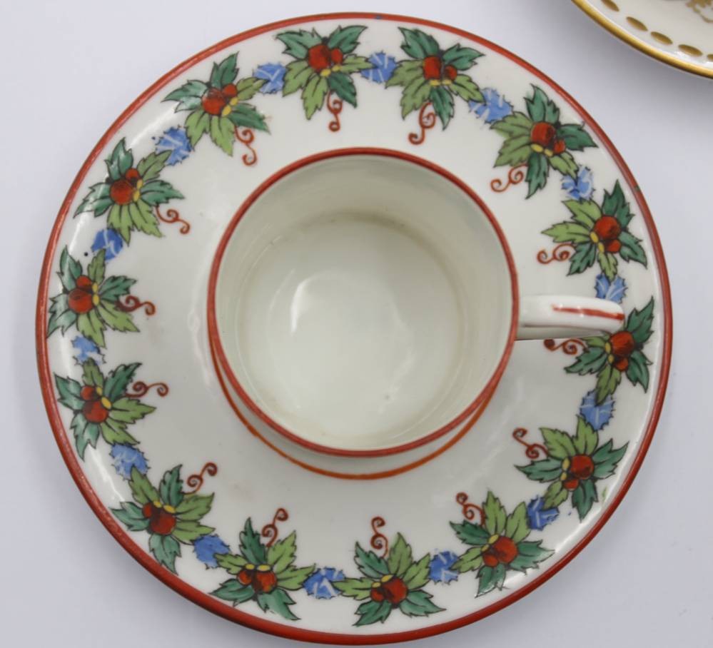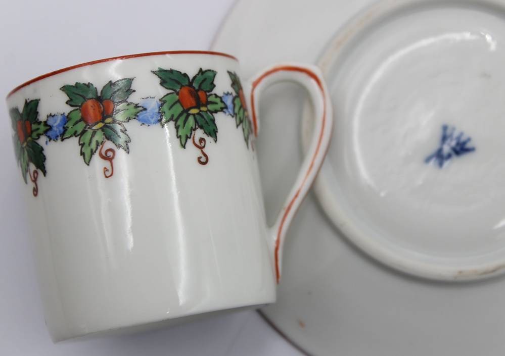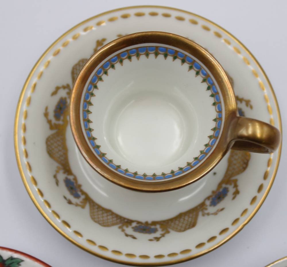 3x div. Mokkatassen mit U.T., älter, Edelstein, Ernst Bohne und Hüttensteinach, ca. H-6cm