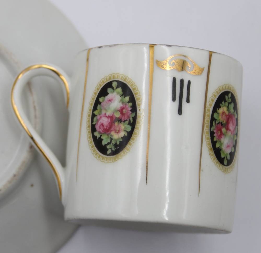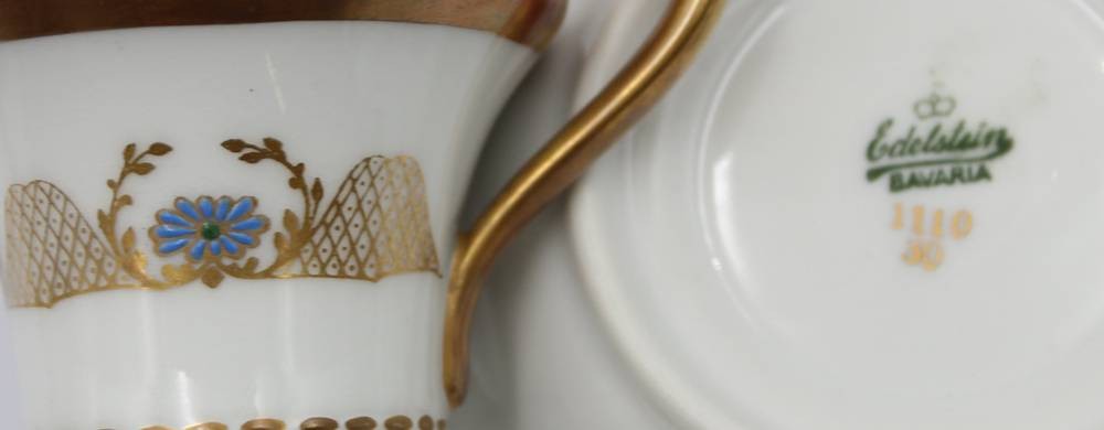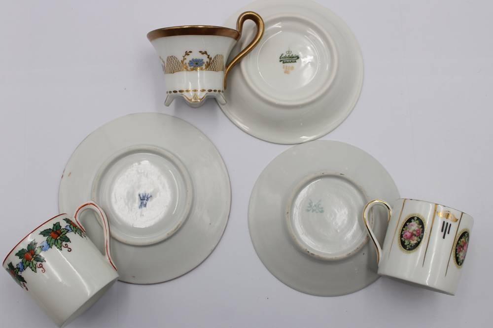 3x div. Mokkatassen mit U.T., älter, Edelstein, Ernst Bohne und Hüttensteinach, ca. H-6cm [1]