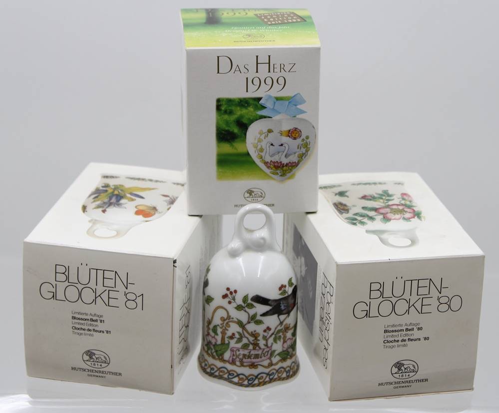 3x Jahresglocken und ein Herz, Hutschenreuther, 3x OVP, Septemberglocke H-10,5cm