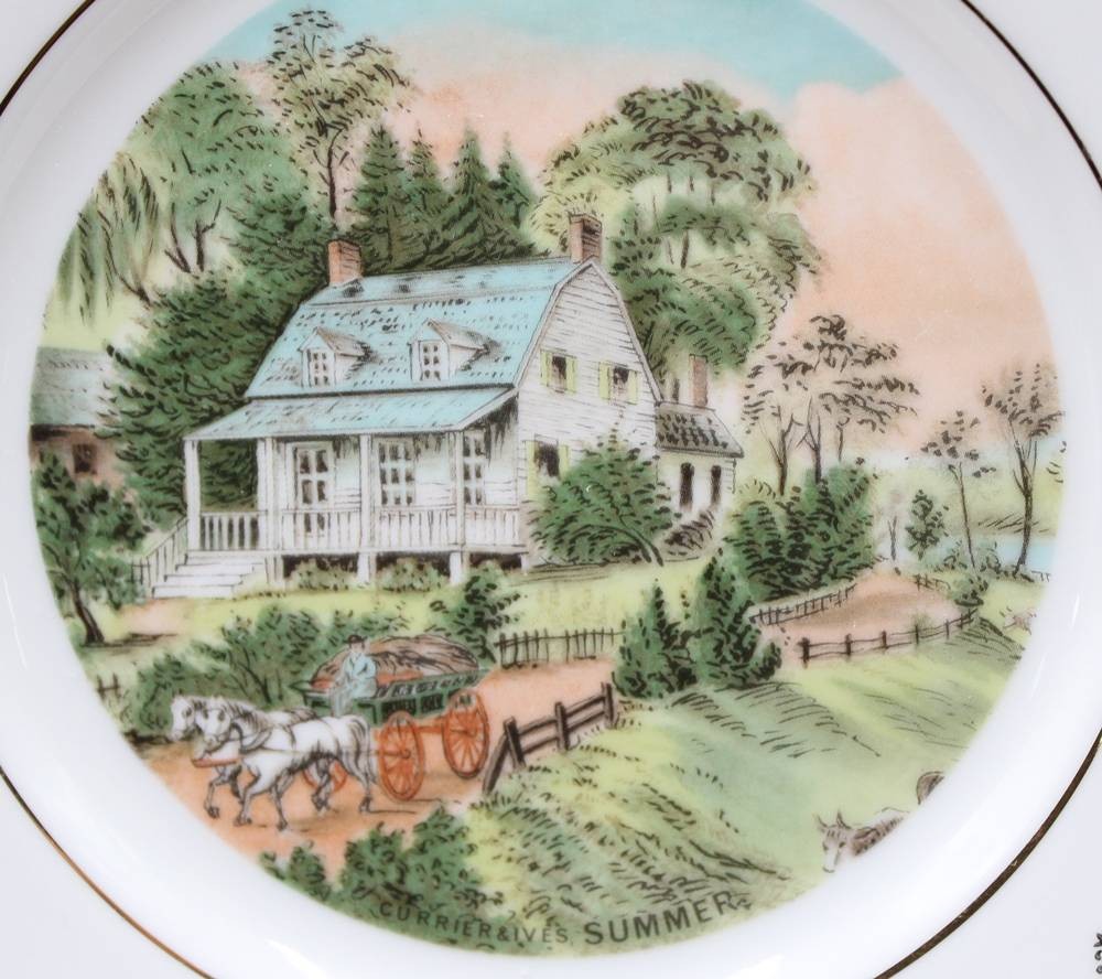 3x Jahreszeitenteller mit Motiven von Currier & Ives, Autum, Spring, Summer, je D-20,5cm [1]