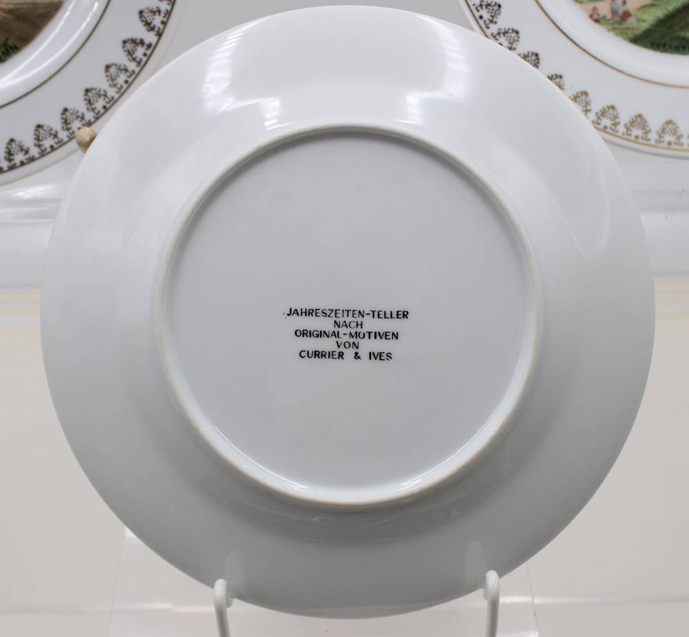 3x Jahreszeitenteller mit Motiven von Currier & Ives, Autum, Spring, Summer, je D-20,5cm