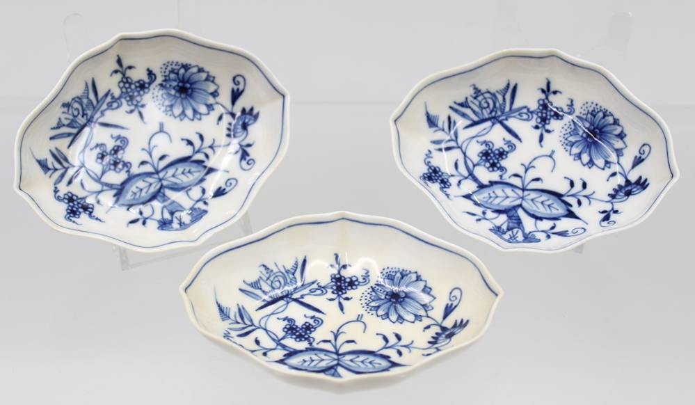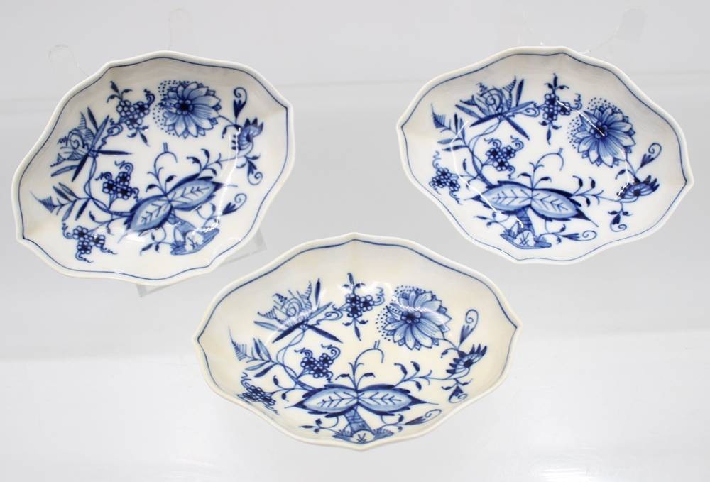 3x Schalen, Meissen,.Schwertermarke, Zwiebelmuster, je 2 Schleifstriche, ca. 10,3 x 8cm [1]