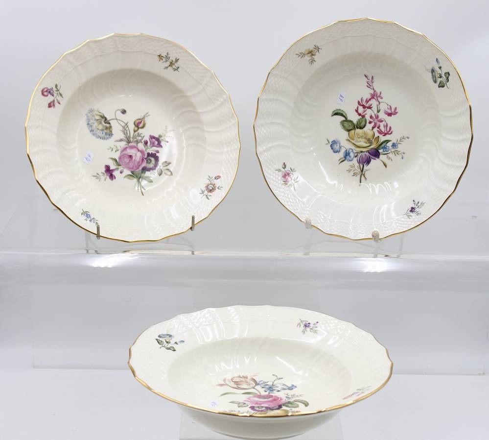 3x Suppenteller ?, Royal Copenhagen, florale Bemalung, ca. H-5,7cm D-25cm [1]