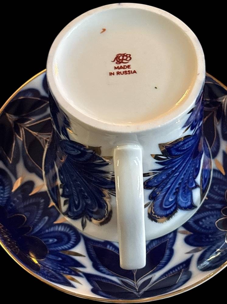 3x Tassen mit U.T."Lomonossow" Form Leningradski, Dekor "Vögel" kobalt mit 22-Karat Golddekor [1]