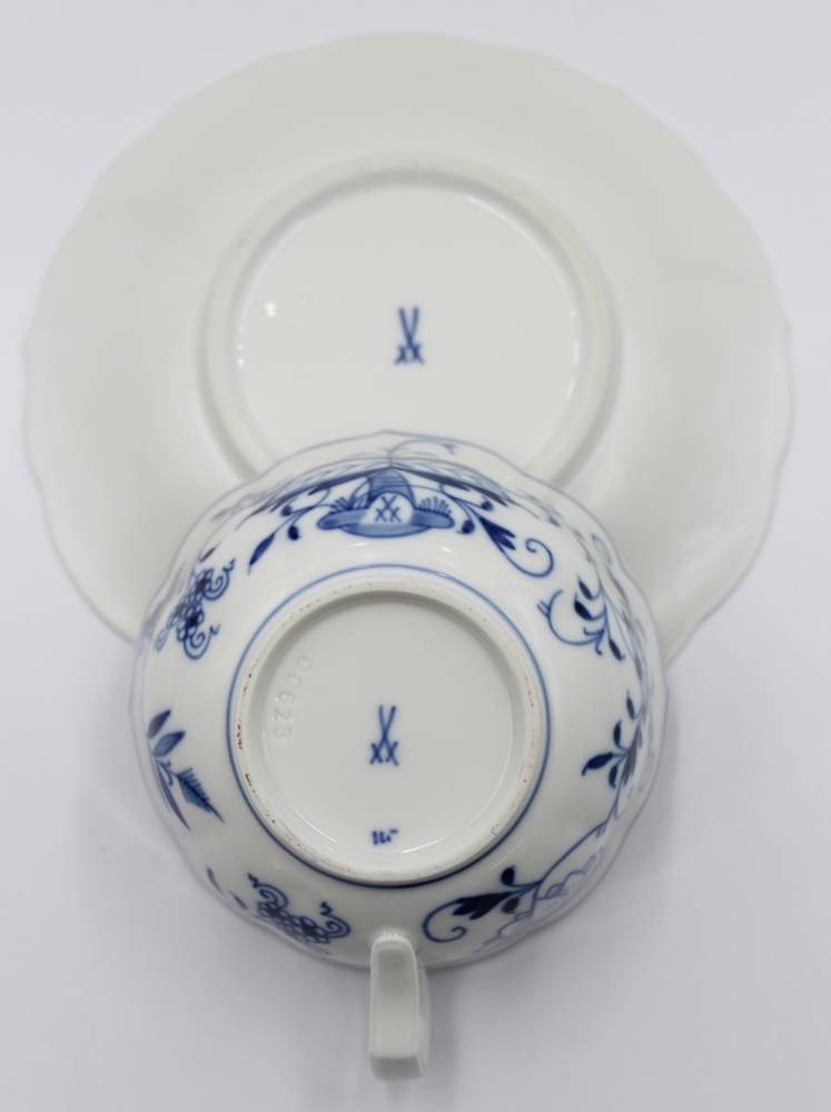 3x Teetassen mit U.T., Zwiebelmuster, 5x 1. Wahl, ein U.T. mit Schleifstrich, Tassen H-5,4cm [1]