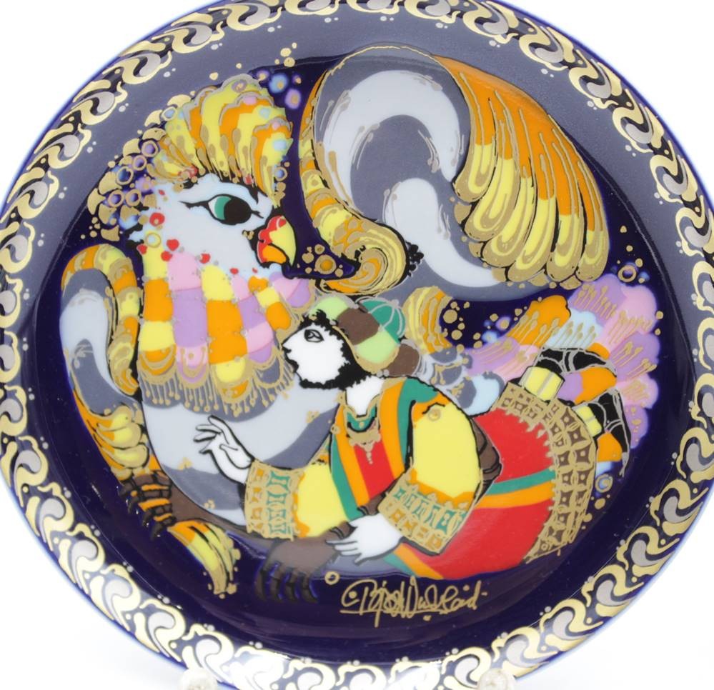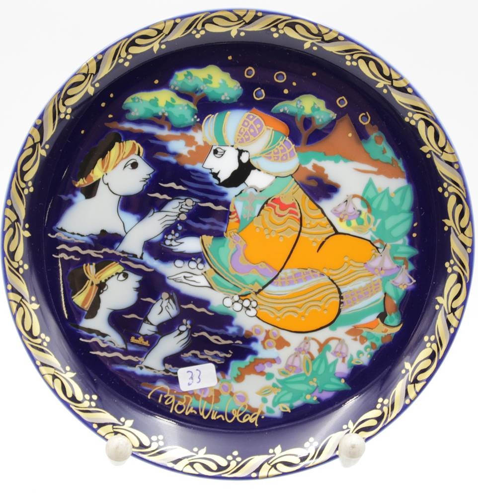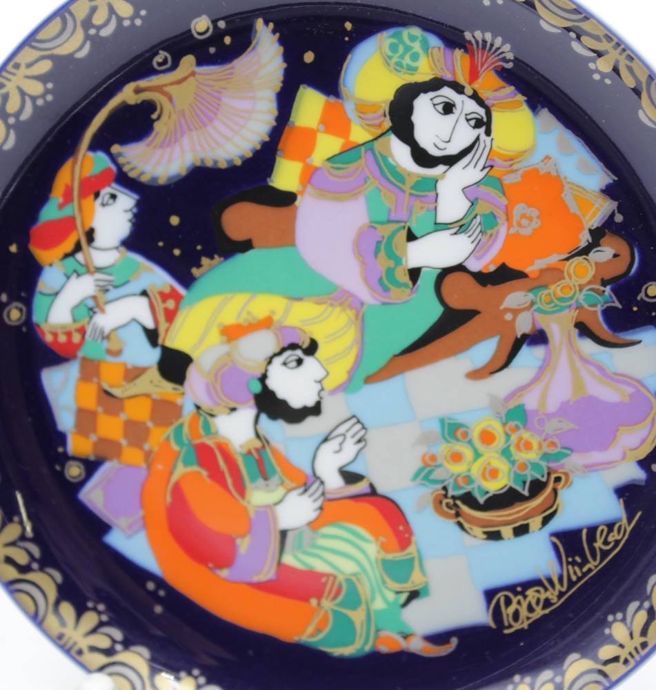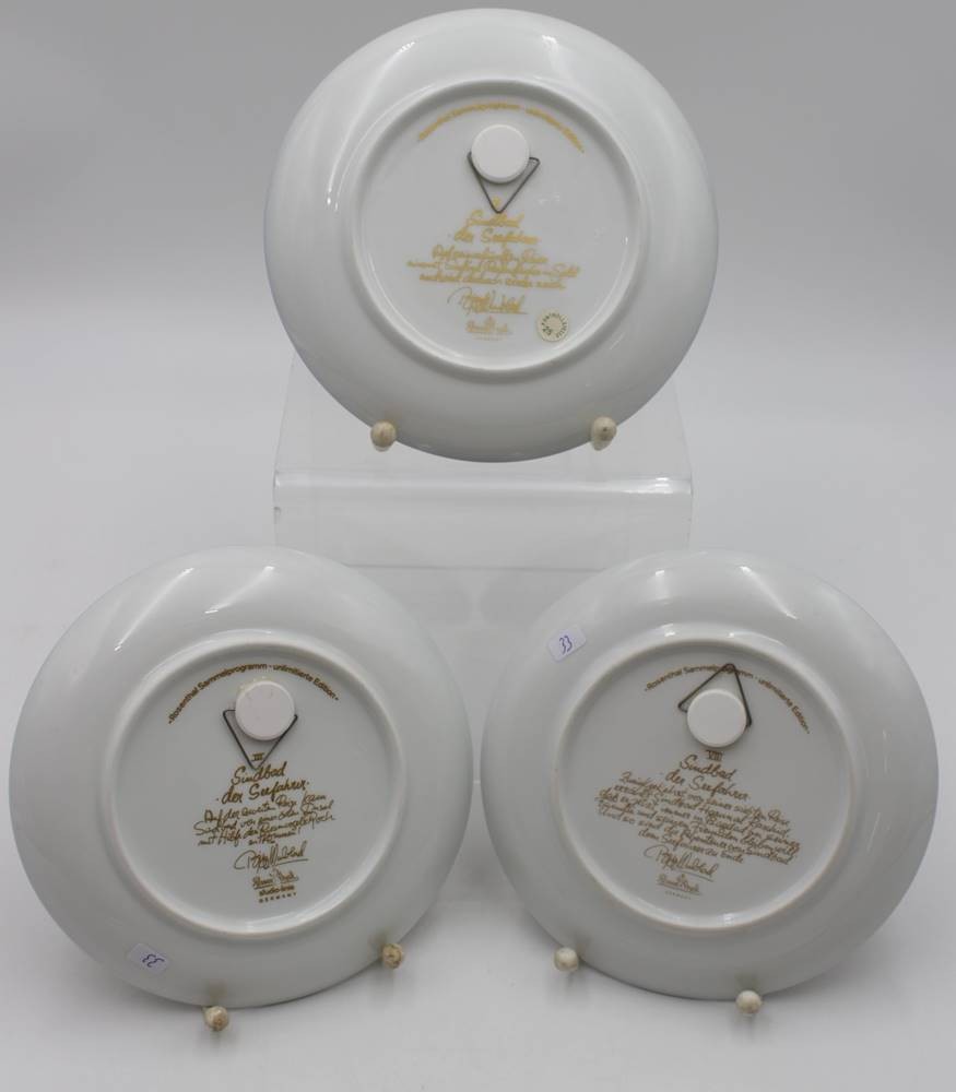 3x Wandteller, Rosenthal studio-linie, Sindbad der Seefahrer, Björn Wiinblad, 2 Teller mit Schleifstrich, ca. H-16,5cm. [1]