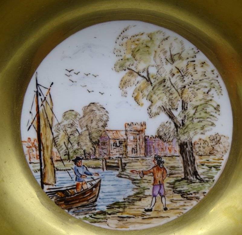 4 Ringschälchen "KPM" Berlin, bemalt mit Kauffahrteiszenen, H-5 cm, D-13 cm, [1]