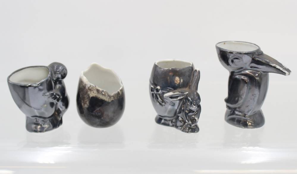 4x div. wohl Eierbecher, silberfarben, älter, leicht berieben, ca. H-8cm [1]