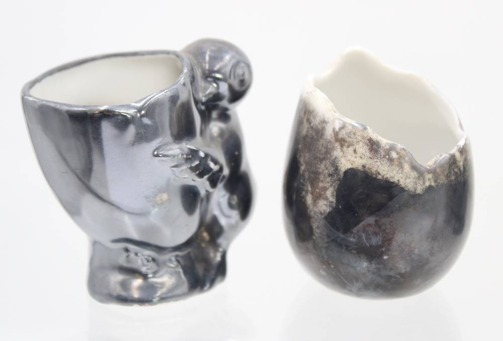 4x div. wohl Eierbecher, silberfarben, älter, leicht berieben, ca. H-8cm