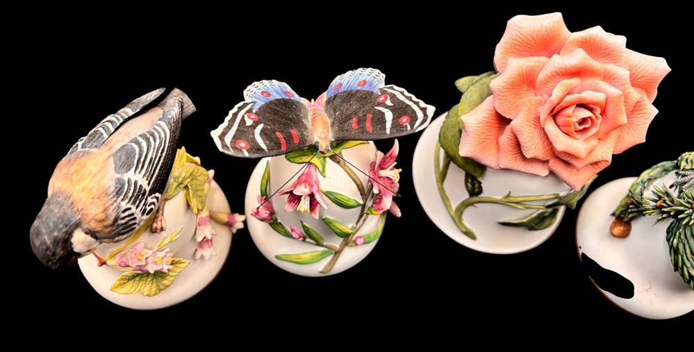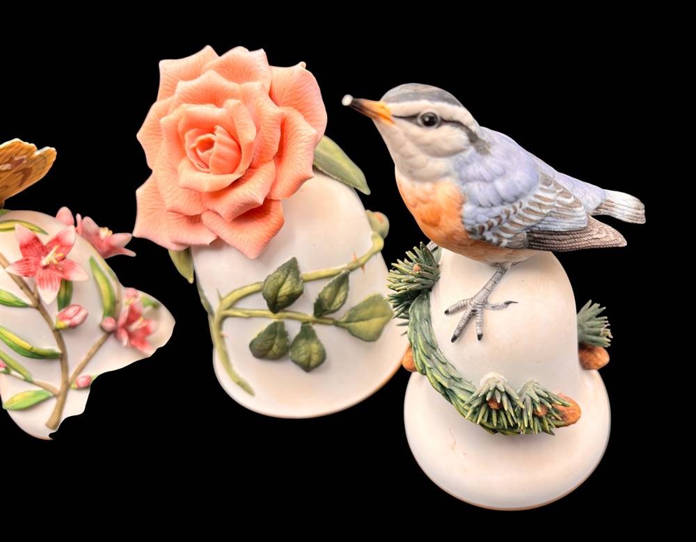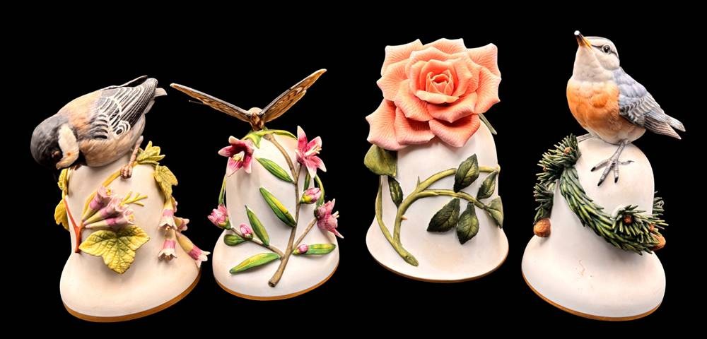 4x gr. Tischglocken, wohl alle Franklin, Vögel einmal Schnabelspitze, 1x Schwanzfedern bestossen, H-ca. 13 cm [1]