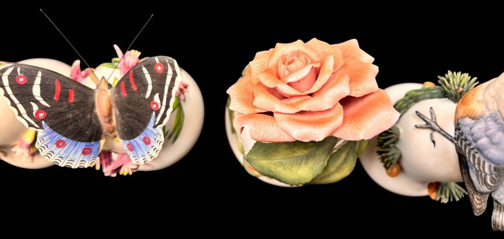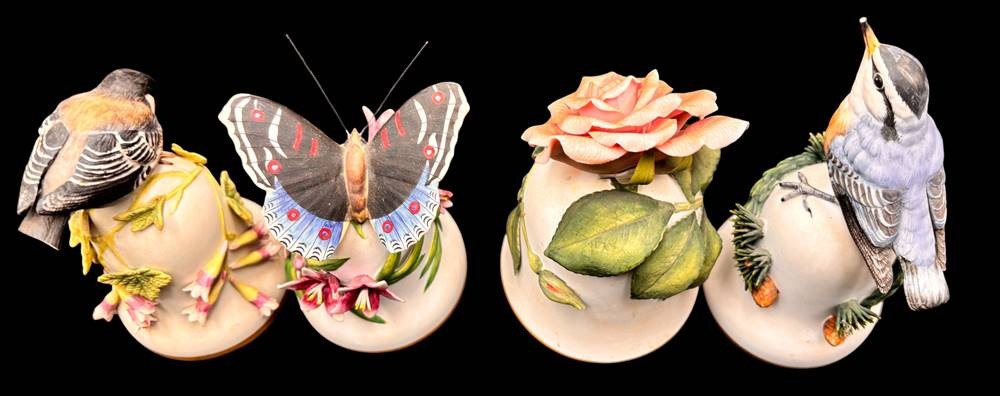 4x gr. Tischglocken, wohl alle Franklin, Vögel einmal Schnabelspitze, 1x Schwanzfedern bestossen, H-ca. 13 cm