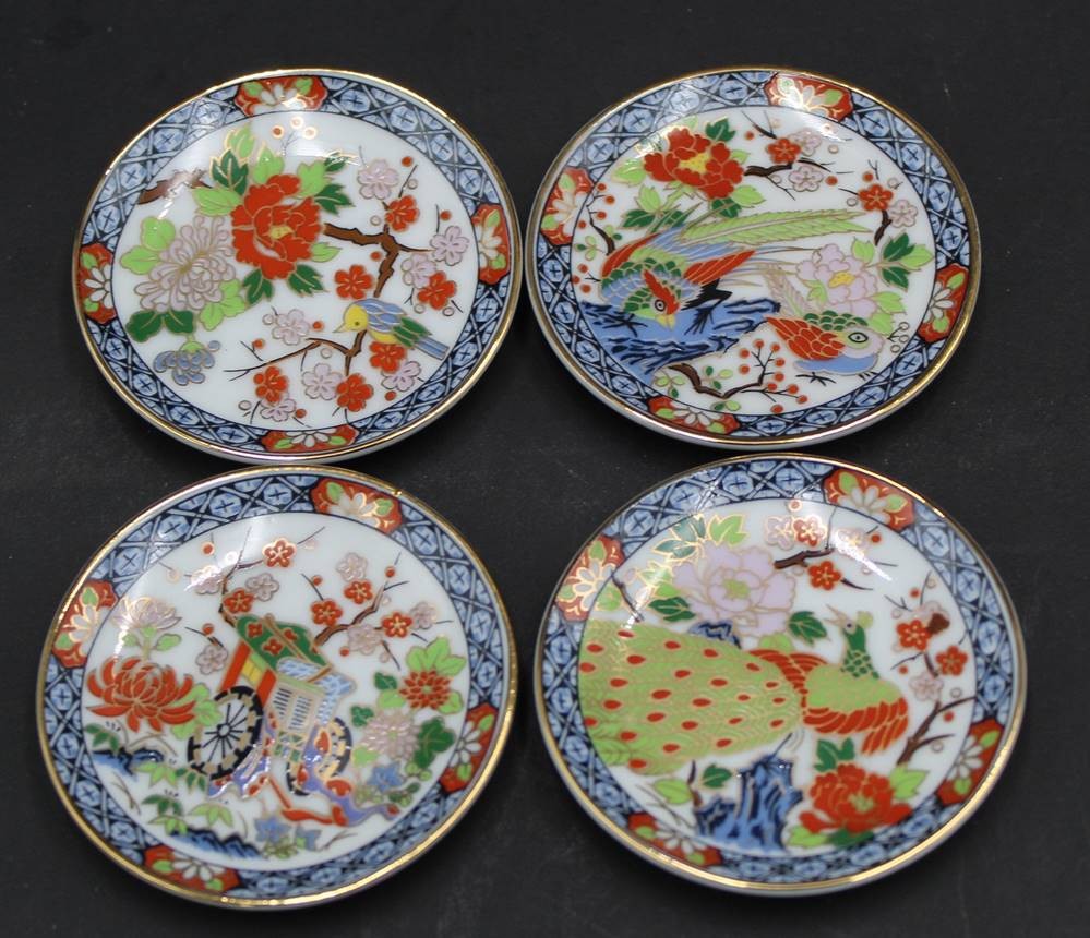 4x japanische Miniature Imari Teller, handbemalt, D-5,2 cm