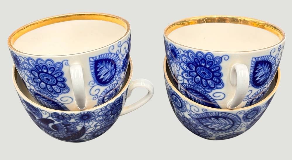 4x Kaffeetassen "Lomonossov" Kobalt mit Gold