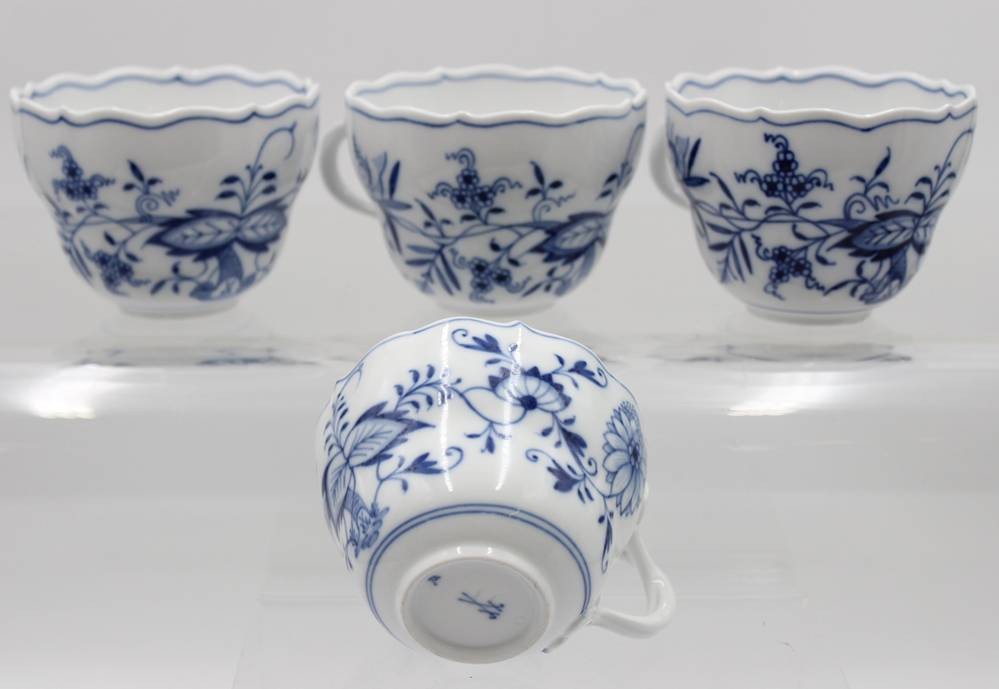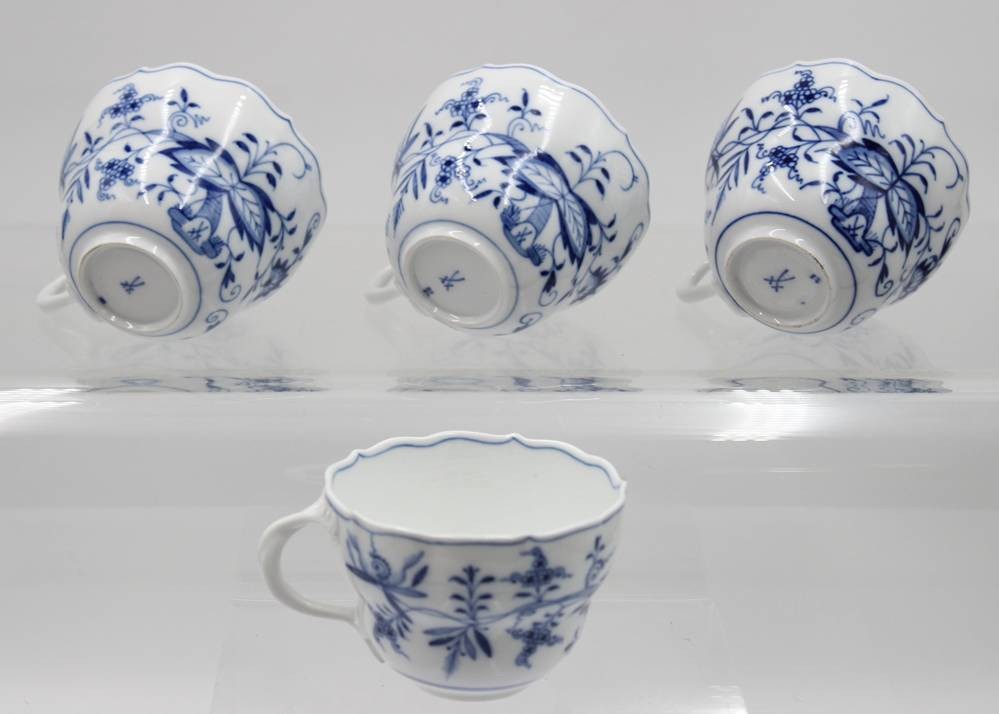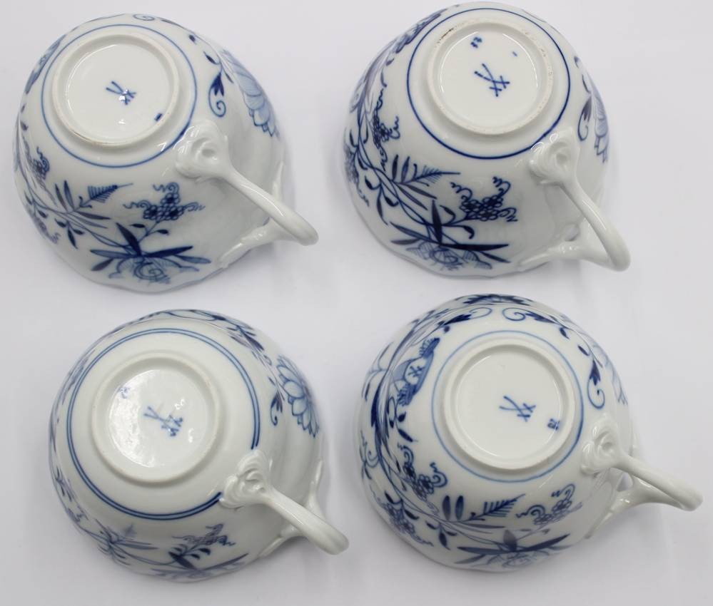 4x Tassen, Meissen, Zwiebelmuster, je mit Schleifstrichen, ca. H-6,8cm [1]