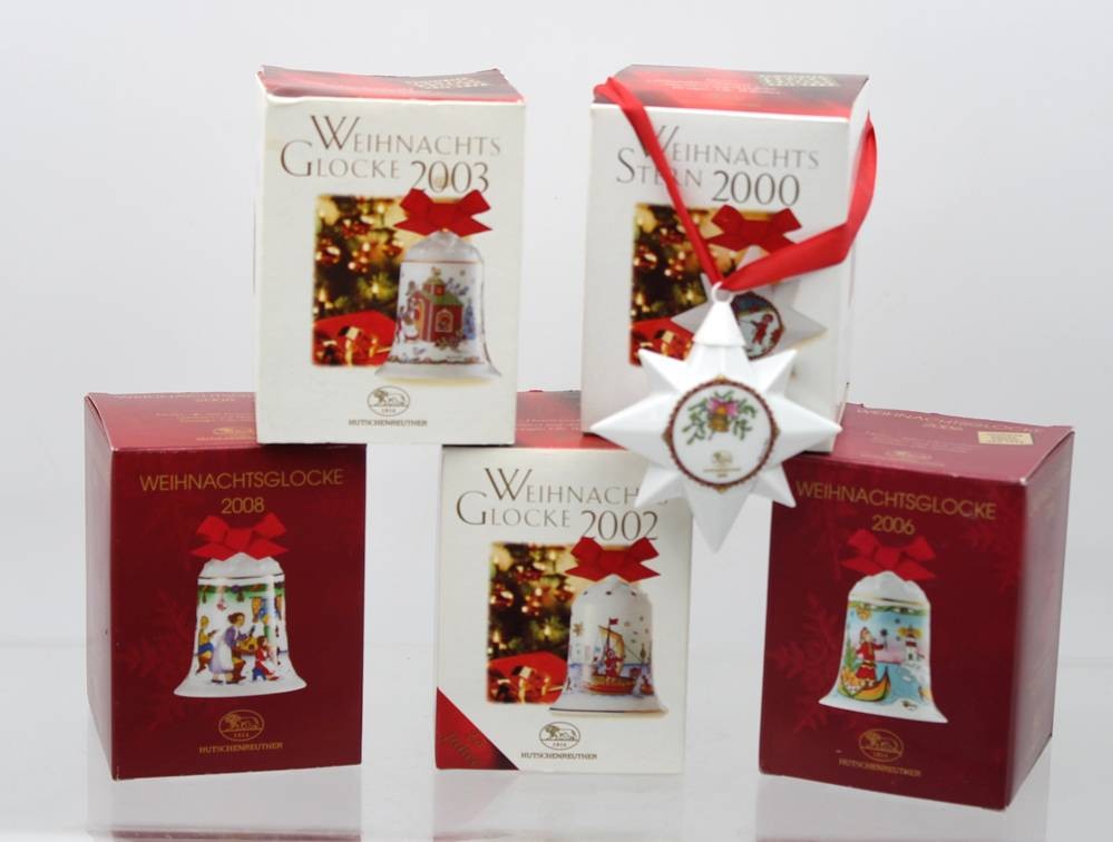 4x Weihnachtsglocken sowie ein Stern, Hutschenreuther, 2002, 03, 06 und 2008 [1]
