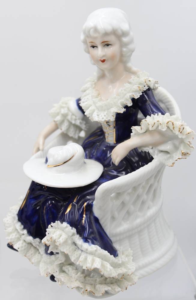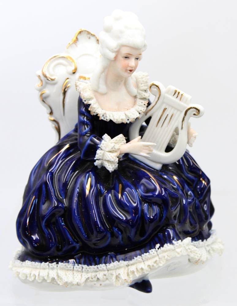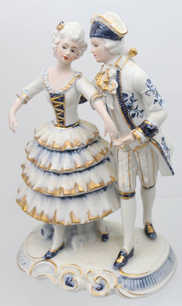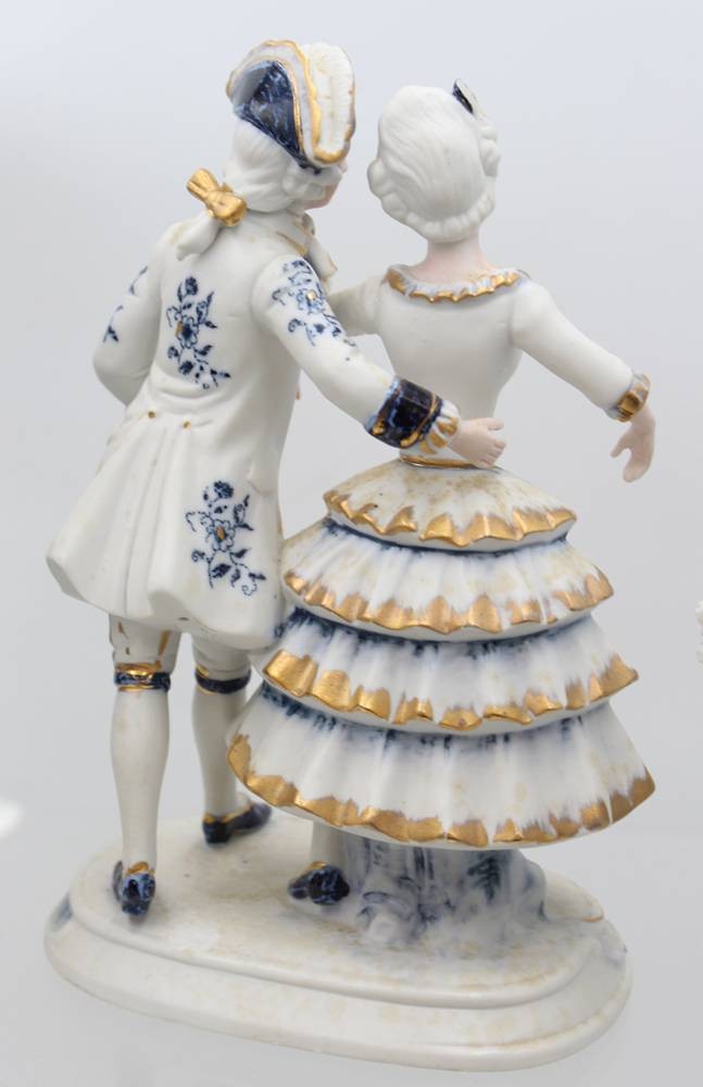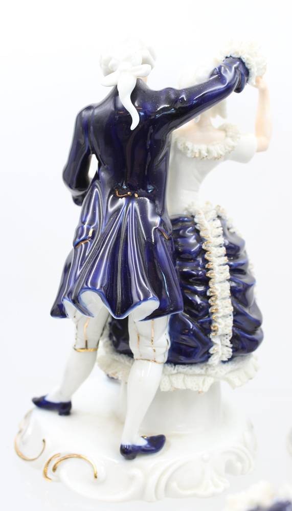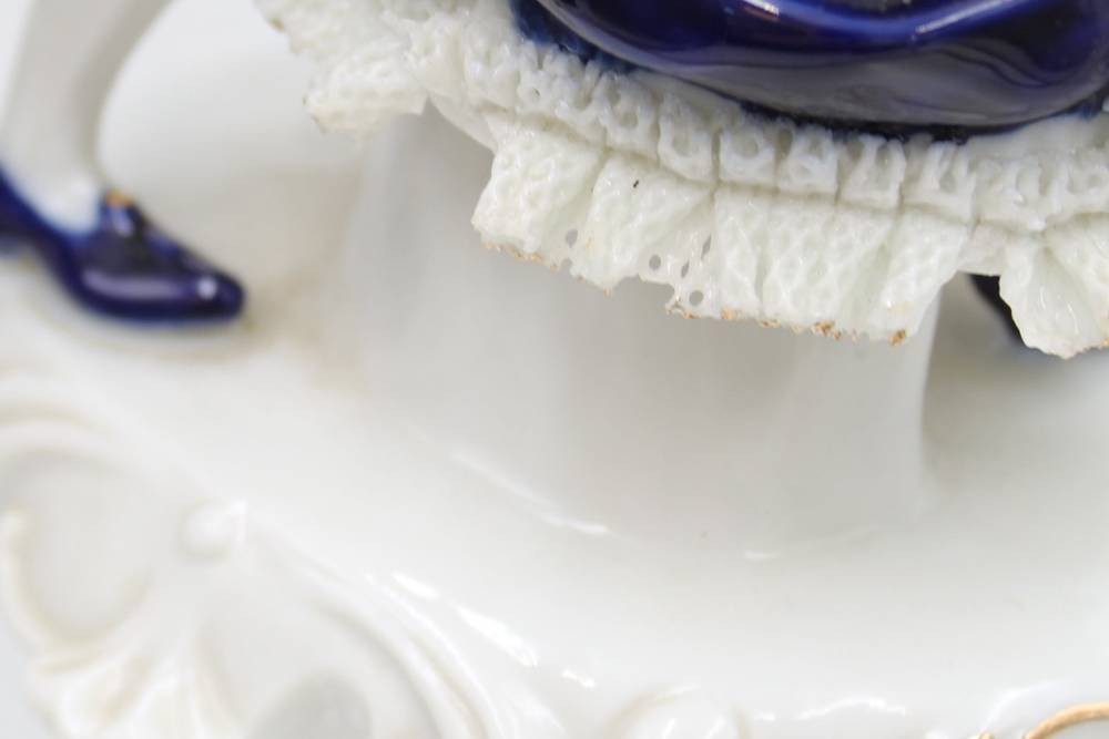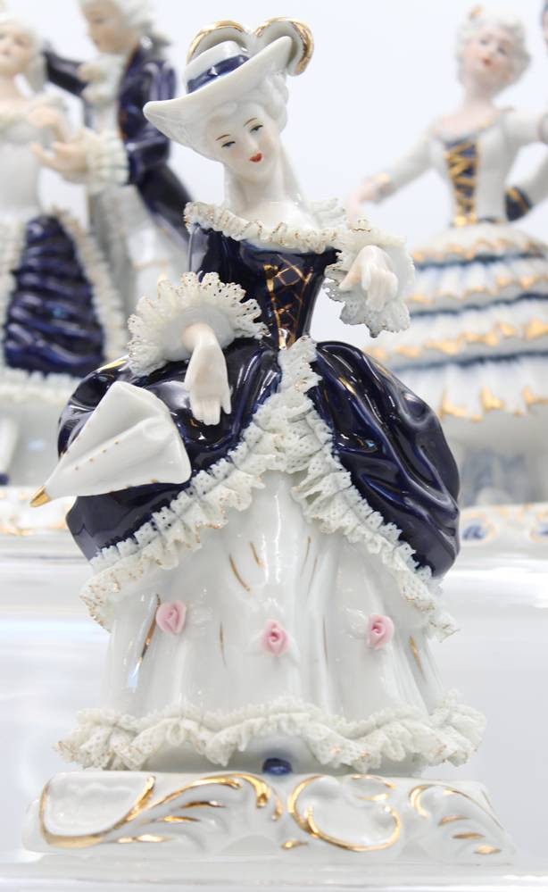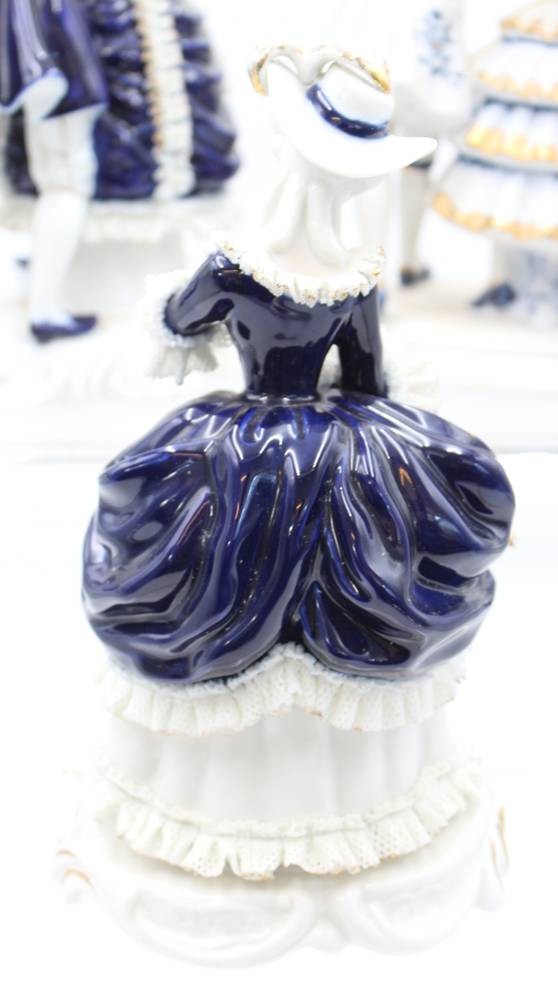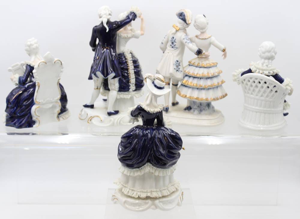 5x div. Figuren, Rokoko, ungemarkt, Kobalt, Spitze meist mir bestossungen, ca. H-22cm [1]